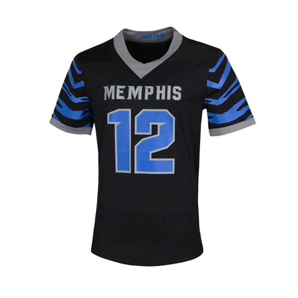 Memphis Tigers Black NCAA College Football Jersey . Authentic style Tigers game football jerseys are superbly crafted and custom made using only the finest materials. Jerseys are constructed and crafted like the ones the pros wear design to replicate the college onfield uniforms. They feature premium fabric with all sewn-on graphics matching the actual players jerseys.